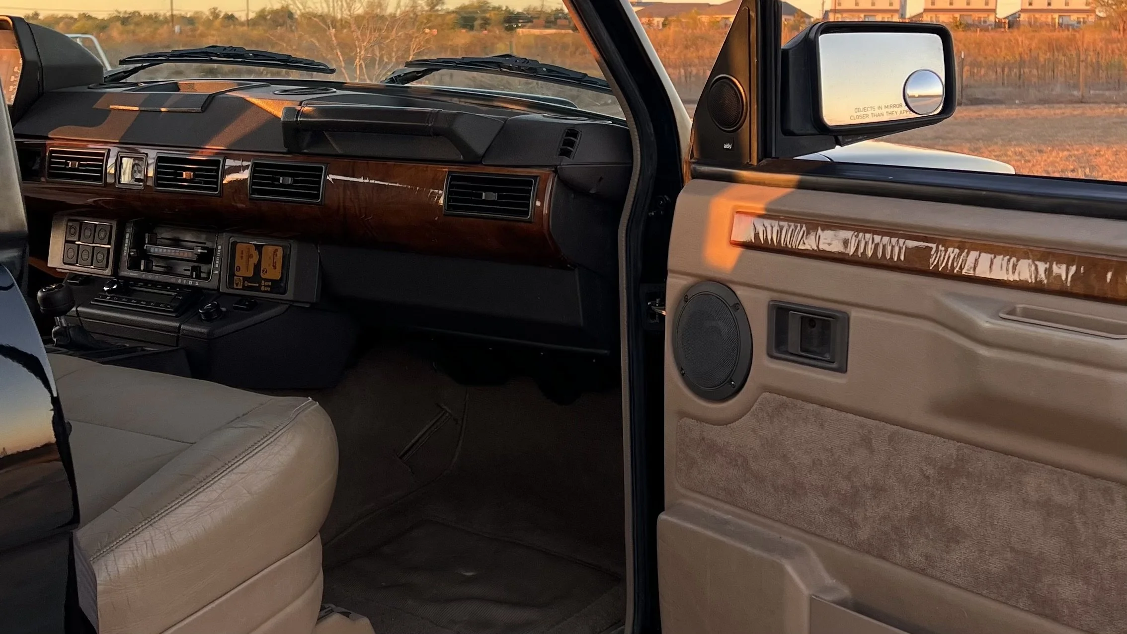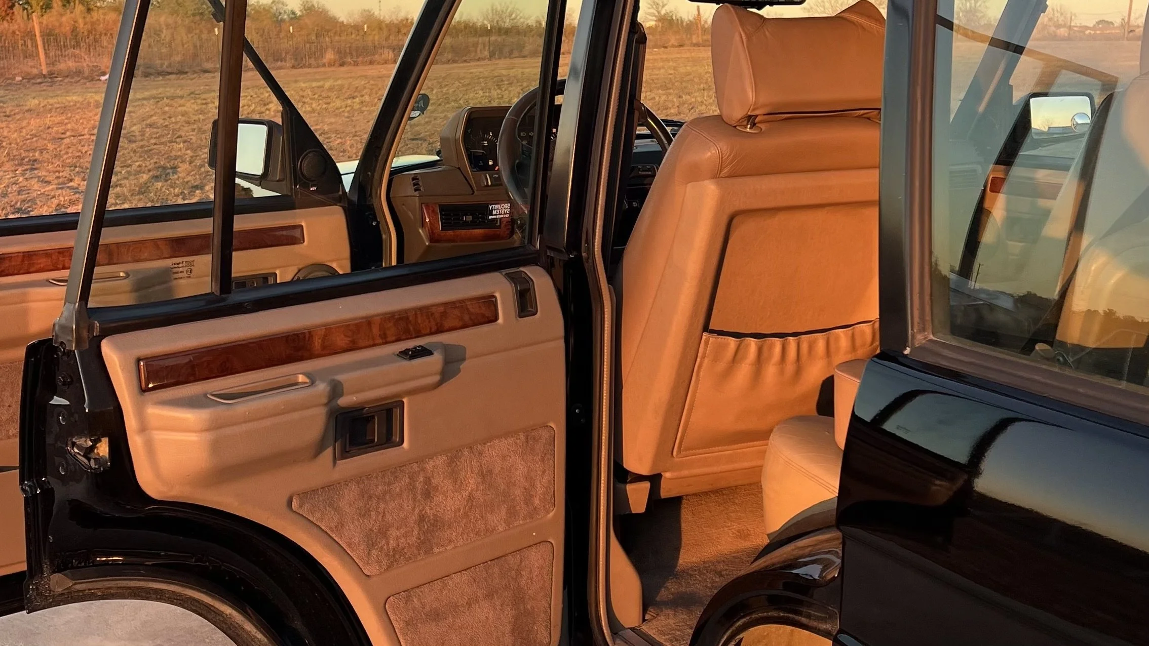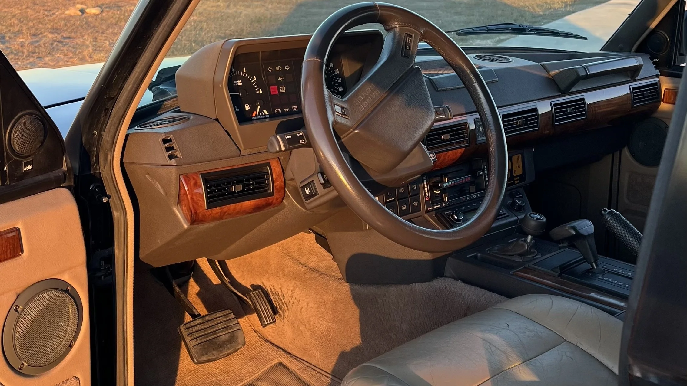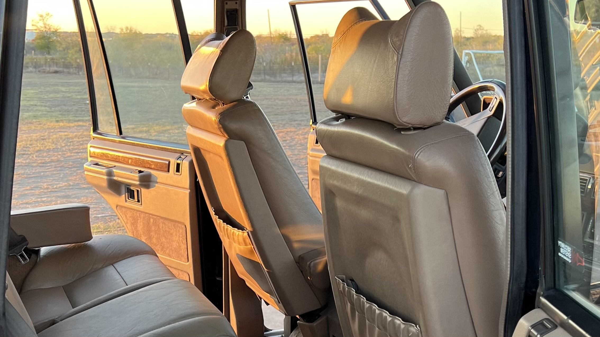 In addition to the numerous standard features included in the 1992 Range Rover, the County package included horizontal pleats on the leather, burl walnut wood trim, heated seats, auto-dimming mirrors, and an A/D/S audio system.